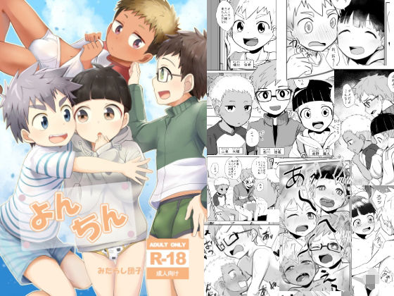 よんちん【無料サンプル画像10枚】 / みたらし団子-よんちん:同級生同士でオナ練開始!強引攻め×天然受け、真面目攻め×寡黙受け(B5、28P、18禁BL)■内容 同級生4人でゲームするため佳希の家に集まる繭太、徳義…